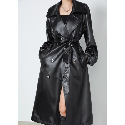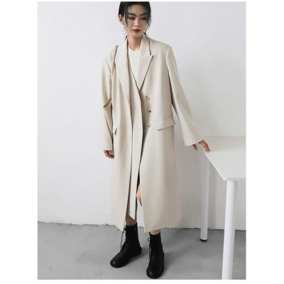 2023 Autumn Heavy Industry Temperament Double Placket Long Loose Suit Jacket Over-the-Knee Windbreaker