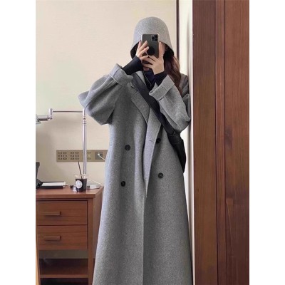 Fashionable street high-end gray woolen coat for women winter new windbreaker design long woolen coat trendy