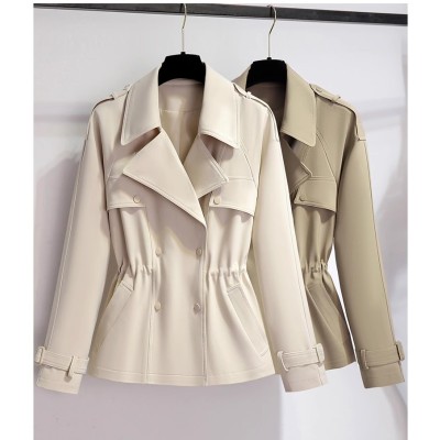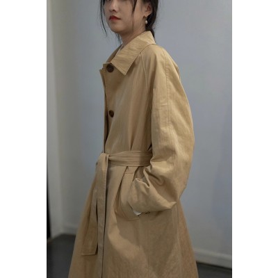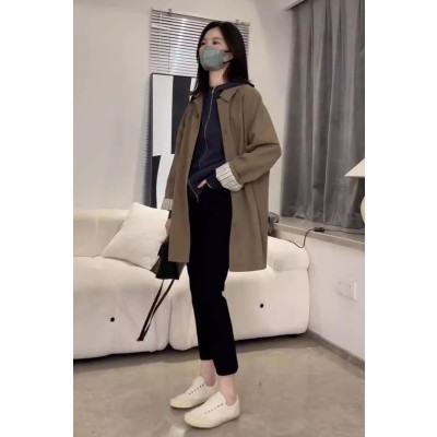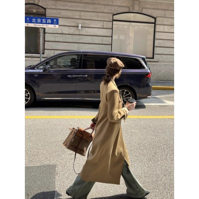 French retro temperament casual loose khaki mid-length windbreaker jacket for women