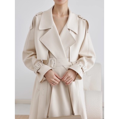 Temperament casual commuting mid-length large lapel double-breasted belt windbreaker women's jacket