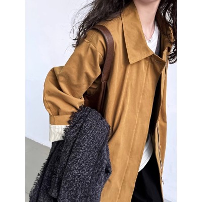 2024 new spring and autumn women's temperament loose and slim mid-length coat
