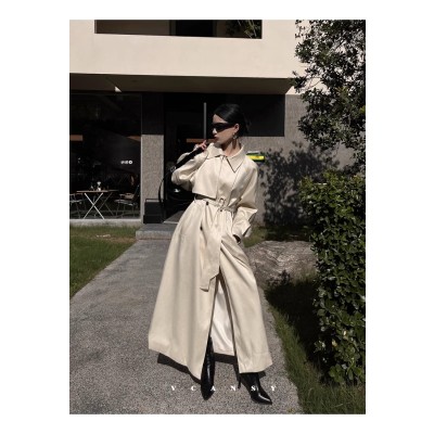 2023 new spring and autumn over-the-knee windbreaker Korean style loose and high-end coat