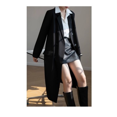 2023 Autumn Heavy Industry Temperament Double Placket Long Loose Suit Jacket Over-the-Knee Windbreaker
