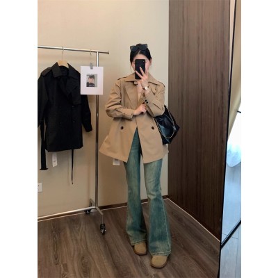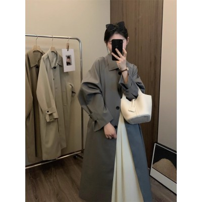 French retro temperament casual loose khaki mid-length windbreaker jacket for women