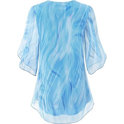 Womens Ruffle 3/4 Sleeve Mesh Blouses Loose Flowy Tops Stretchy Shirts
