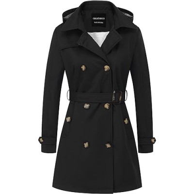 Women's Trench Coat, Double-breasted Rain Coat with Belt 100% Cotton