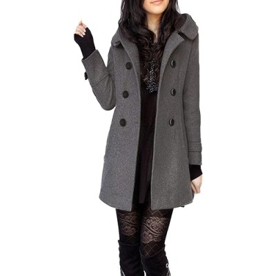 Women's Warm Double Breasted Wool Pea Coat Trench Coat Jacket