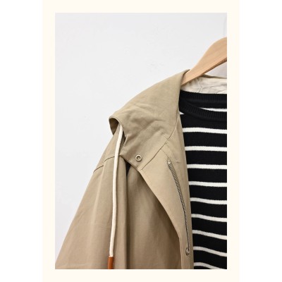 Korean style loose lazy style high-end silhouette large pocket design hooded workwear windbreaker coat for women