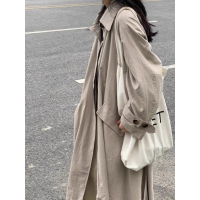 Long sand-colored trench coat for small women, Korean style, 2024 early spring new style, high-end, super good-looking