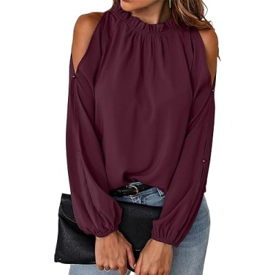 Womens Tops Dressy Casual Cold Shoulder Ruffle Collar Blouses Fall Fashion Shirts for Work
