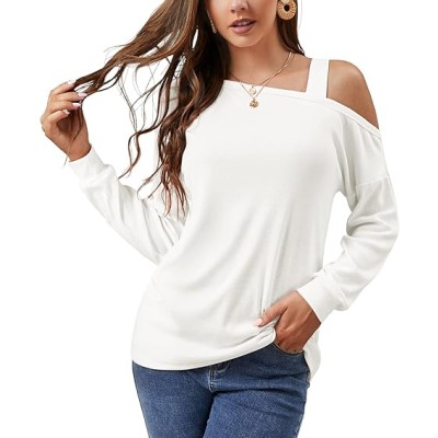 Women's Long Sleeve Tunic Tops Casual Cold Shoulder Blouse Shirts
